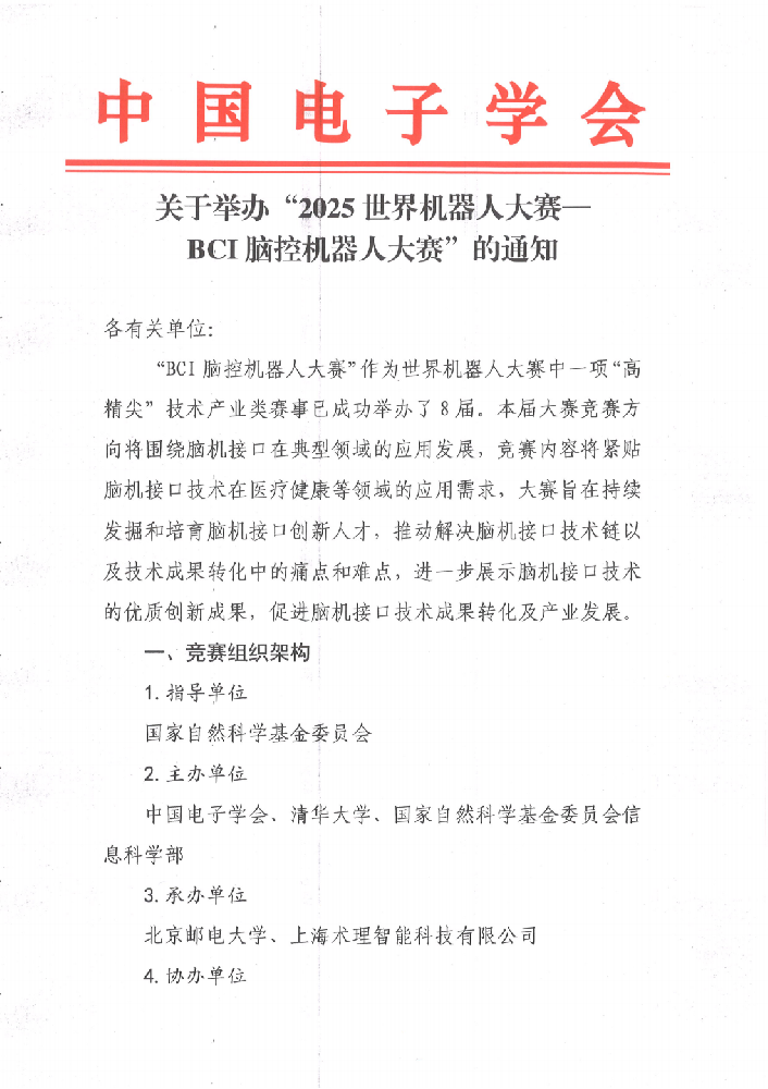 关于举办“2025世界机器人大赛—BCI脑控机器人大赛”的通知