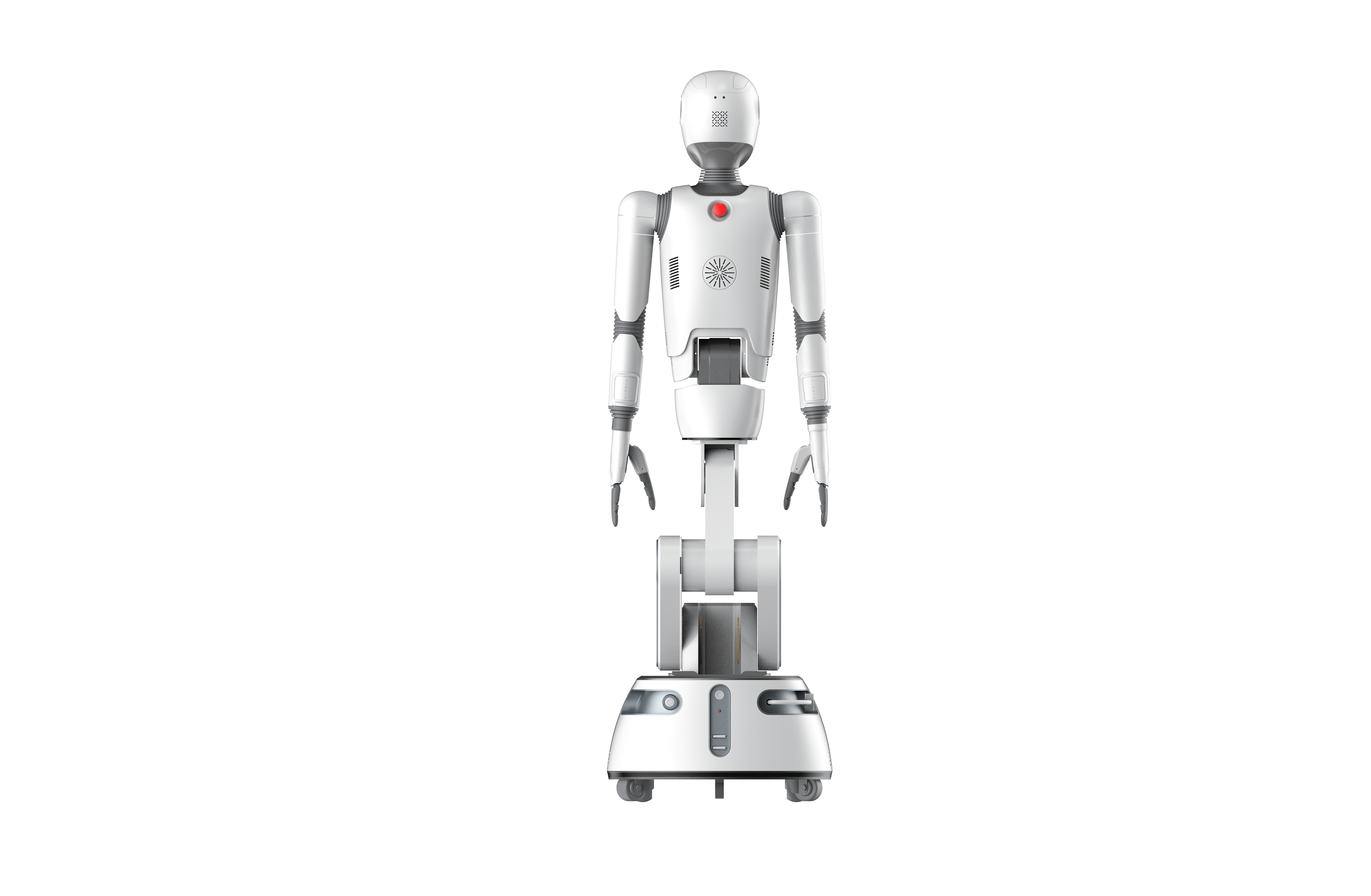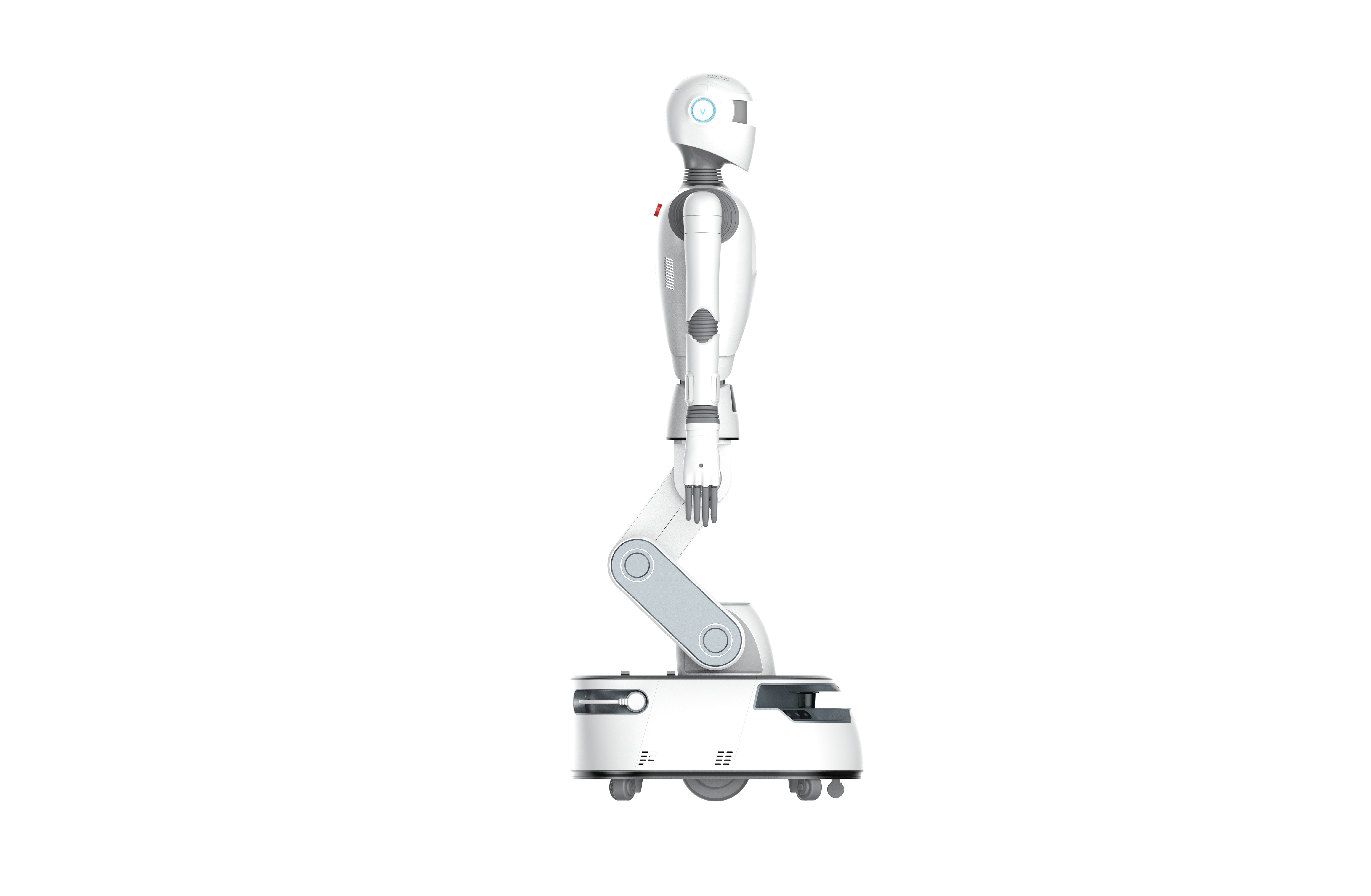 伟景人形机器人晓唯(AGV版)上半身采用全新高度仿人的外形设计,底部采用支持自动导航的轮式底盘,整机支持升降,集多种核心技术于一体,能够通过感知交互与外界环境进行实时互动,可在工业、家庭、商业、教育、科研等各领域中担当人类的得力助手。