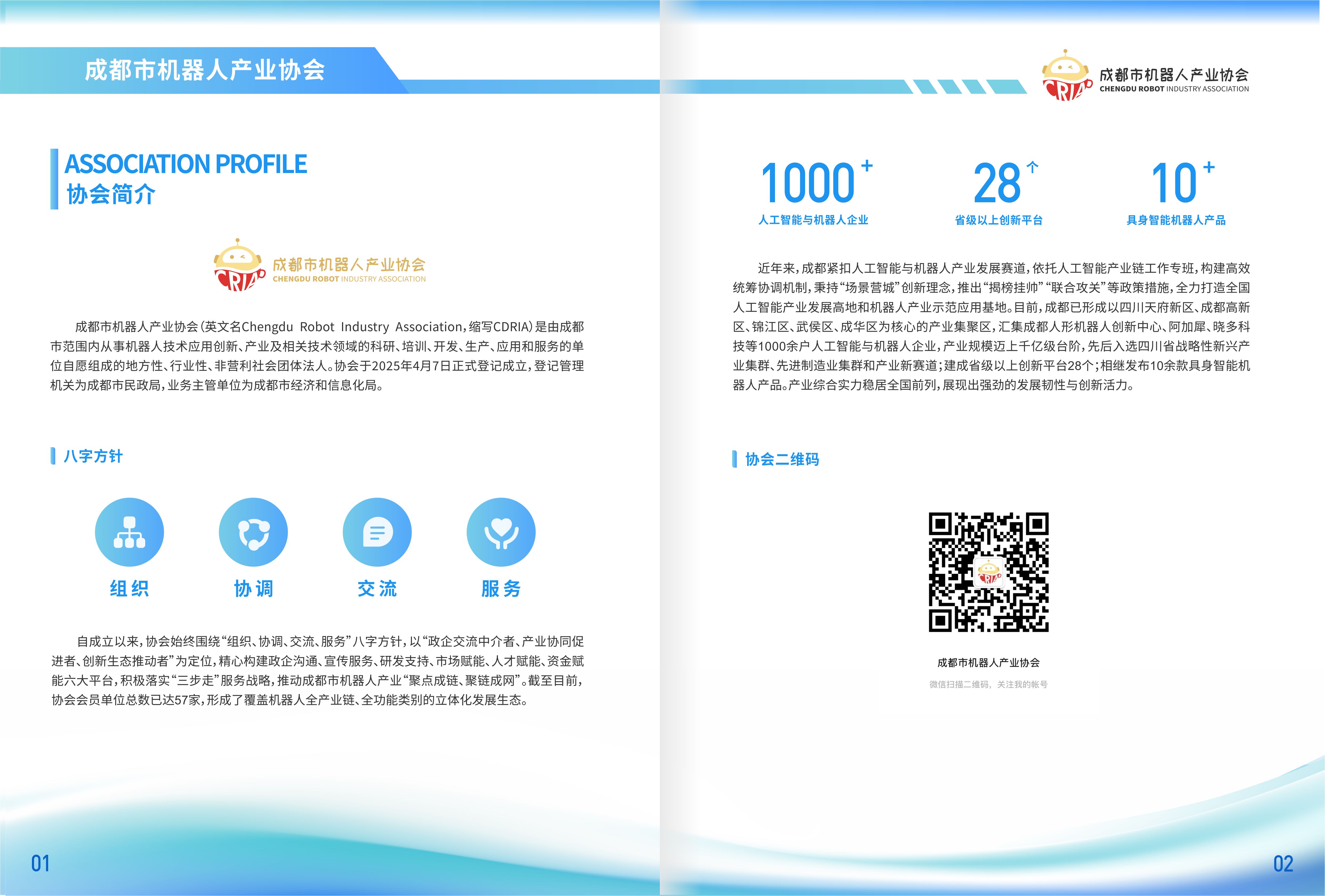 Chengdu Robot Industry Association (abbreviated as CDRIA) is a local, industry-specific, non-profit social organization legal person composed of voluntary participants, including units engaged in robot technology application innovation, industry and related technology fields such as scientific research, training, development, production, application and services within the scope of Chengdu. The Association was formally registered and established on April 7, 2025. Its registration authority is the Chengdu Civil Affairs Bureau, and its competent business unit is the Chengdu Bureau of Economy and Information Technology.