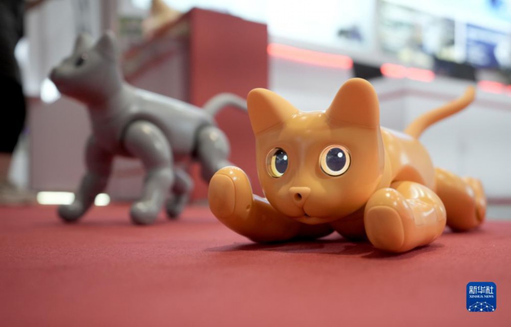 这是8月16日在2023世界机器人大会上拍摄的仿生陪伴机器猫。
