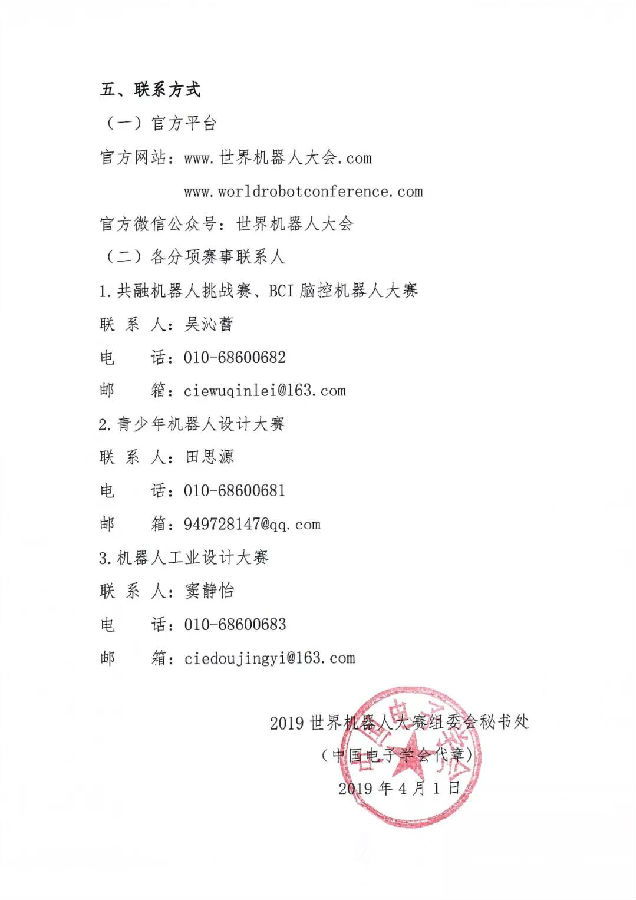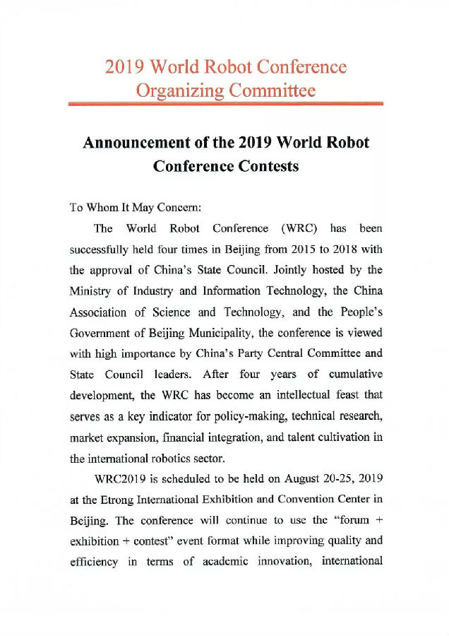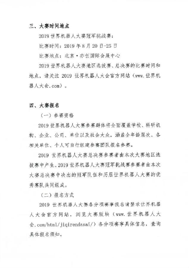 关于举办2019世界机器人大赛的通知