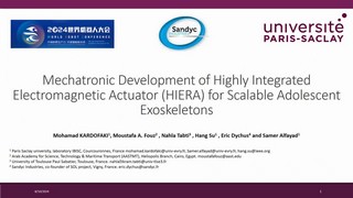 • Mechatronic Development of Highly Integrated Electromagnetic Actuator (HIERA) for Scalable Adolescent Exoskeletons